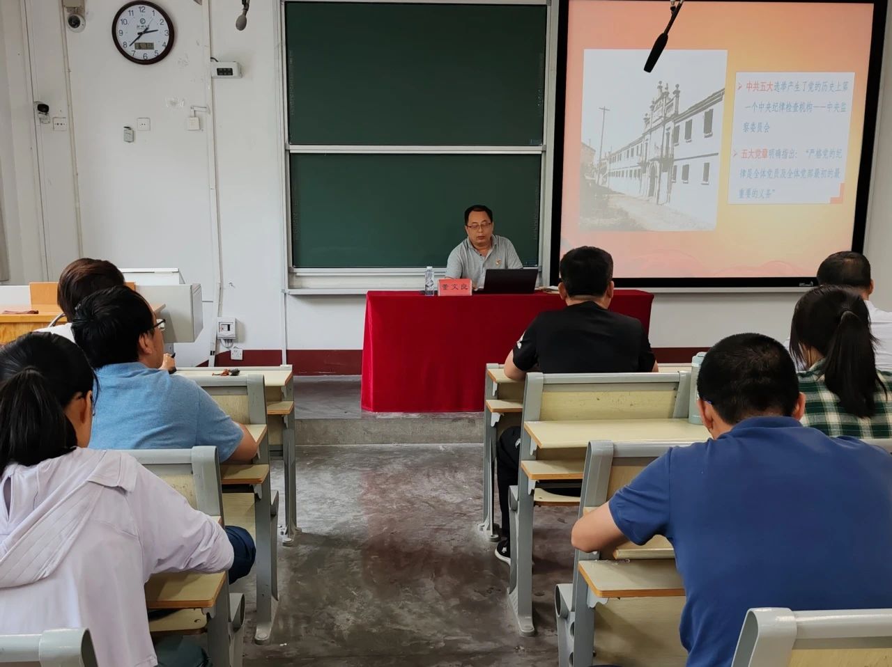 为扎实开展党纪学习教育,全面贯彻“全面从严治党永远在路上”“党的自我革命永远在路上”的精神,增强党员纪律意识和规矩意识,6月6日,我院于OK138太阳集团东校区2#201举办党纪学习教育专题党课,此次党课特邀校党委组织部副部长董文良同志为我院党员授课。