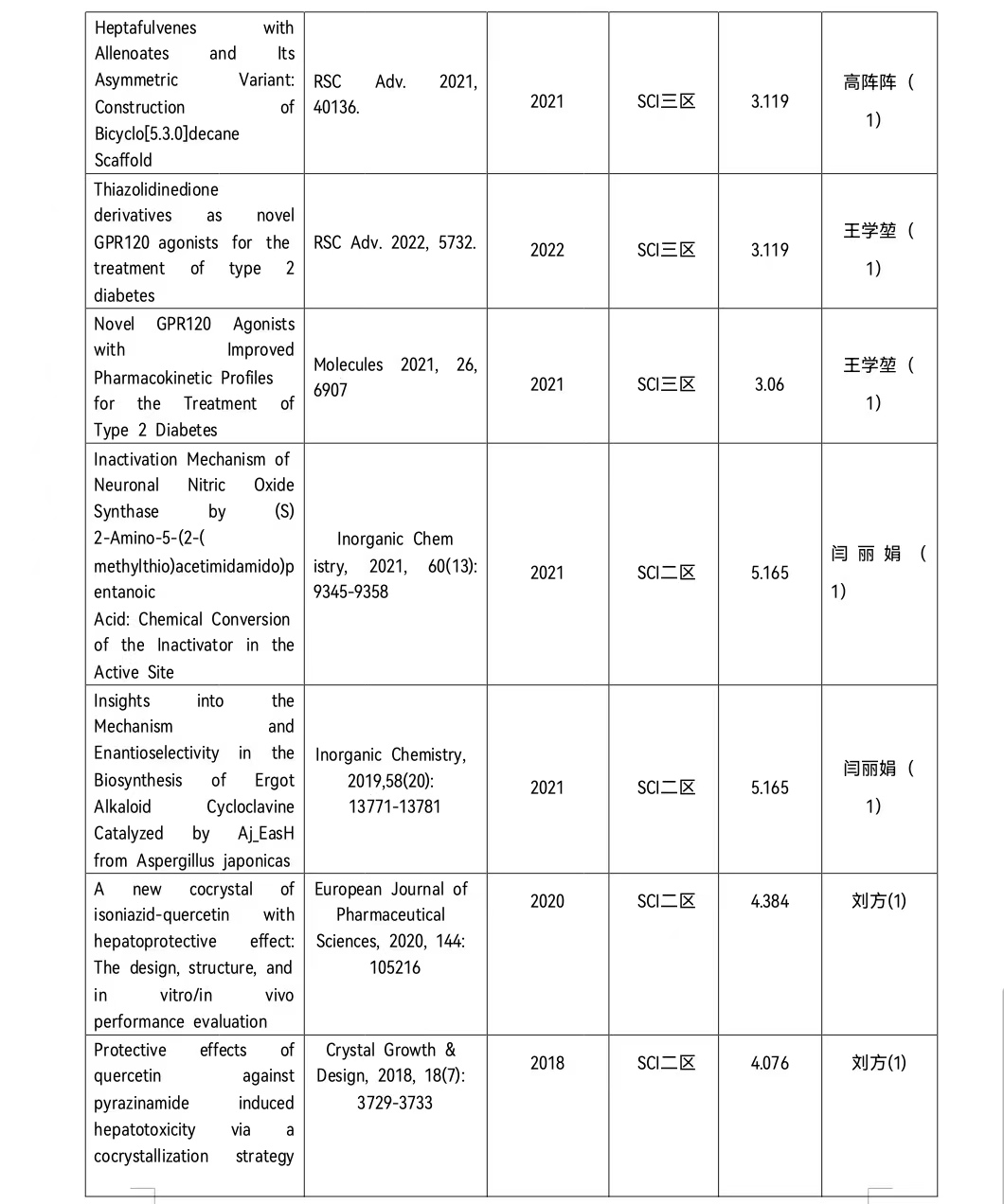 在团队成员研究领域的基础上,围绕化学小分子药物的合理设计、绿色制备与活性研究方向。开展基于中枢神经系统和代谢性疾病的发病机制,筛选具有新药研发潜力的靶点,利用计算机辅助药物设计与合理药物设计的策略,设计筛选新型的小分子药物,进而克服现有药物副作用大等缺点。团队目标成果主要涵盖3个ESI学科:药学、药理毒理学和化学。如团队已经发表的Pharmacological Reports, European Journal of Pharmacology,Letters in Drug Design & Discovery等SCI期刊。