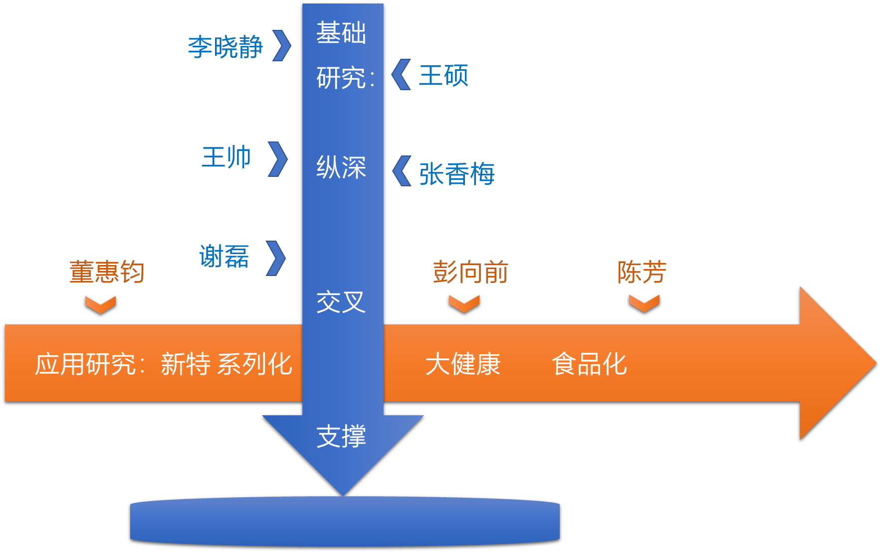 团队聚焦人体慢性炎症、免疫失调、代谢(内分泌)紊乱3个人体失衡和熵增机制,围绕来源于益生菌、稀有放线菌、食药用真菌和补益类中草药的天然活性物质,开展基于合成生物学和化学生物学的基础研究,包括分离纯化鉴定解析与结构修饰、代谢途径改造和定向进化、异源表达和基因编辑、靶标分析和治病机理研究。在此基础上,强化应用研究,形成健康和医药相关产品应用开发的核心技术和体系。