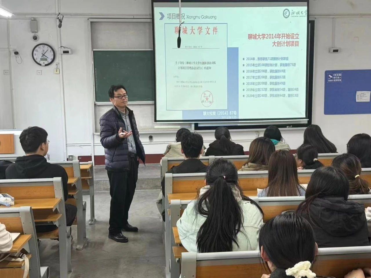 刘国运首先对创新创业大赛与学科竞赛的概念、流程及评审规则进行解读,随后从项目背景、比赛类型、申报程序、工作要求四方面逐一展开讲解。他表示参加竞赛不仅能够增加同学们的个人经历,更能够提升大家解决问题的能力。刘国运结合个人指导学生竞赛的经验,建议同学们要打好专业基础,积极与导师交流,与团队齐心协力,方能取得优异的成绩。他鼓励同学们要勇敢追梦,不畏挑战,同时希望同学们抓住创业竞赛这一展示才华、锻炼能力的绝佳平台,最大限度地挖掘自我潜能,实现个人成长。活动结束后,同学们纷纷表示此次讲座使大家对创新创业大赛和学科竞赛有了更加深刻的理解,大家将会借助本次创新创业大赛重要契机,在比赛中展现自己的创意和智慧,相互交流学习,共同成长。