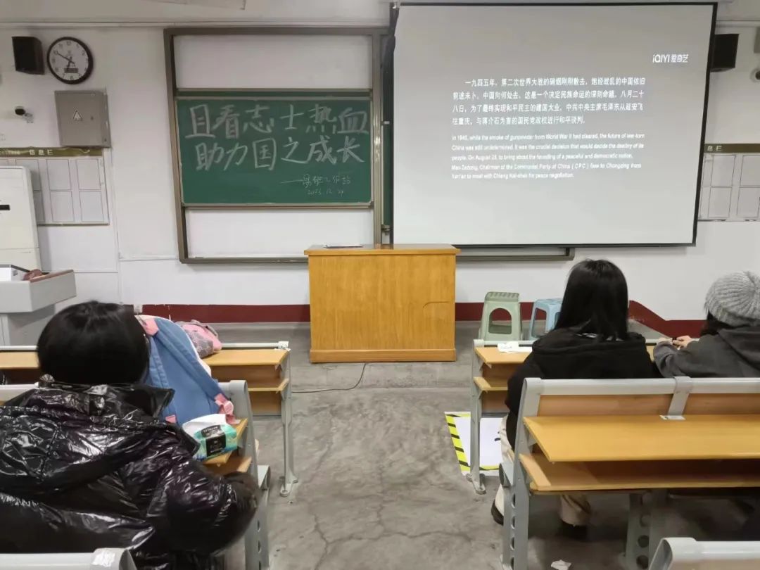 为了激发学生的民族自豪感与爱国热情,增强学生的历史使命感,传承英勇无畏的革命精神,12月24日,我院于OK138太阳集团东校区2#307举办“且看志士热血,传承领袖风范”主题观影活动,2023级部分学生参与其中。