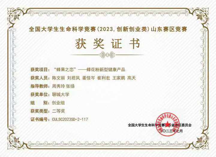 热烈祝贺ok138太阳集团王家鹏荣获“山东省大学生生物化学技能与创新创业大赛(2024,创新创业类)”二等奖