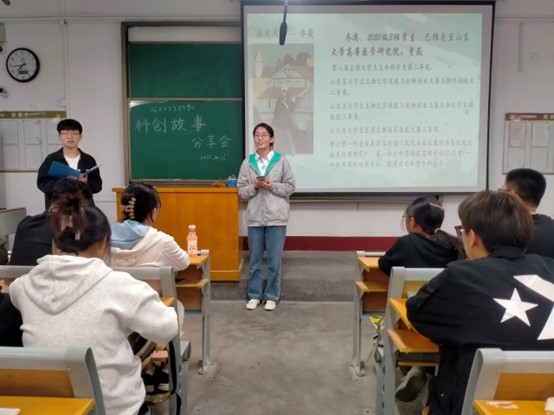 本次活动邀请了我院在科创方面取得优异成果的学生代表郭晓园、牟崇强、乔奕。首先郭晓园向同学们分析了各个阶段进入实验室进行科创的利弊,让学生尽早决定进入实验室的时期,鼓励学生积极参加科创比赛。随后牟崇强向学生介绍了本科期间可以参加的科创比赛、比赛的相关信息、准备比赛的方法,并向学生分享PPT的制作技巧与答辩的注意事项。接着乔奕介绍了自己导师的科研项目,又从“比赛机会的争取、科创项目的打磨、自我时间的分配、面对失败的态度”四个方面为学生分析取得成功的关键。在问答环节,三位讲解针对学生提出的问题进行了细致解答。宣讲完成后放映了《这是一个奋斗和创新的故事》科创短片,看过短片后学生们深深地感受到了科创人不惧困难不断尝试的精神。