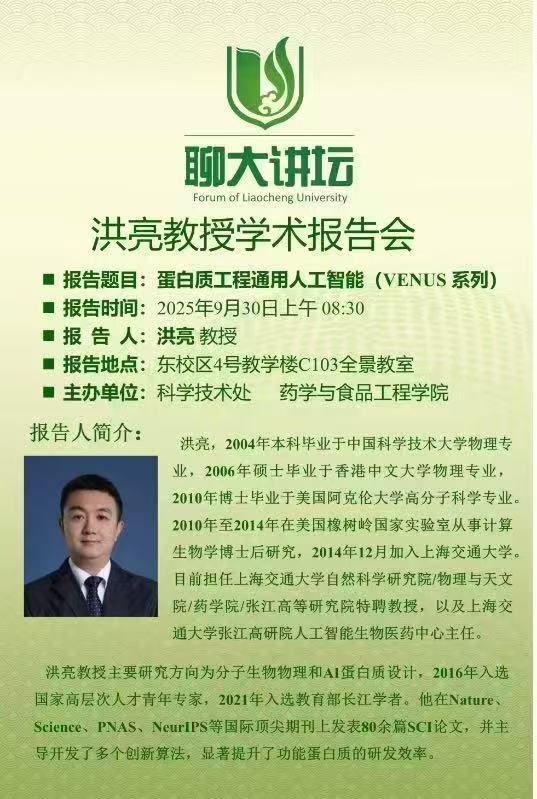 2025年9月30日,OK138太阳集团科学技术处与我院于东校区4# C103举办“蛋白质工程通用人工智能(VENUS系列)”主题学术报告会。洪亮教授在报告中介绍了其团队在蛋白质工程与人工智能结合领域的研究进展,依托自主开发的创新算法,显著提升了功能蛋白质的研发效率,为生物医药领域的蛋白质工程研究带来了突破性的技术支撑。