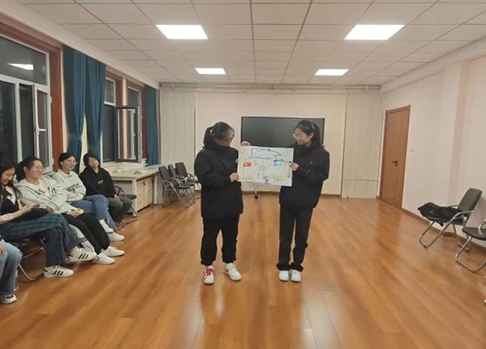 首先,主持人向同学们介绍了这次活动要进行的游戏,同学们依次介绍自己。活动开始,第一个游戏是“桃花朵朵开”,同学们围成一圈根据主持人说出的数字抱在一起。热闹的场面让同学们放下了拘谨。第二个游戏是“坐地起身”,同学们相互帮助,在其他小组没能站起来时,积极帮助对方。第三个游戏是“解开千千结”,最后进行“彩绘接力”,五彩斑斓的画作展现了同学们的热情。丰富的游戏让同学们敞开了心扉,对未来的生活充满热情与希望。也让同学们明白在生活中,团结一致、互帮互助才能飞的更高更远。