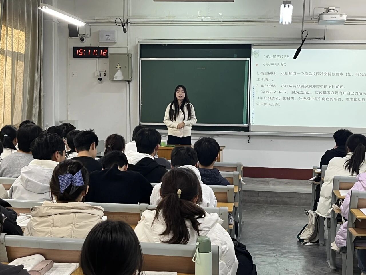 为帮助同学们认知自身情绪特点,掌握情绪调节、压力疏导的基础方法,11月21日,我院于2# 212举办心理团体辅导活动,2023级4班团支部书记信瑞娟担任主讲人。
