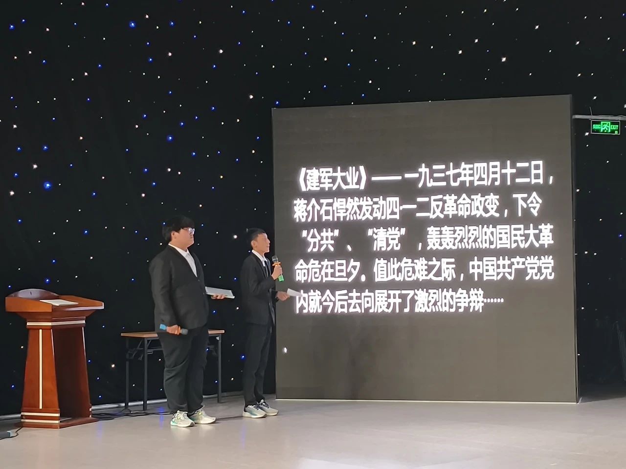 本次大赛设置了文化传承组、经典影视组、动画动漫组三大竞赛类别,邀请专业评委从配音技巧、情感传递等多维度进行现场评分。在文化传承组中,我院韩韫泽、李维哲凭借配音作品《建军大业》脱颖而出。他们以饱满的热情与精湛的配音技艺,赋予经典作品全新活力,让一个个经典角色在声音世界中“复活”,精准刻画了毛泽东、周恩来、朱德等革命领袖在时代洪流中的英勇抉择与豪迈气概,全方位展现了配音艺术的独特魅力。团队成员默契配合,将剧中紧张刺激的氛围、人物间的情感纠葛展现得淋漓尽致,带观众重温那段惊心动魄的历史岁月。凭借出色的表现,我院团队在众多参赛队伍中一举斩获文化传承组三等奖。