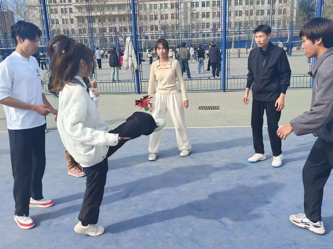 为丰富同学们的课余生活,提升身体素质,3月29日,我院于OK138太阳集团西校区南排球场参加“‘毽’步如飞,引‘翎’风尚”踢毽挑战赛。