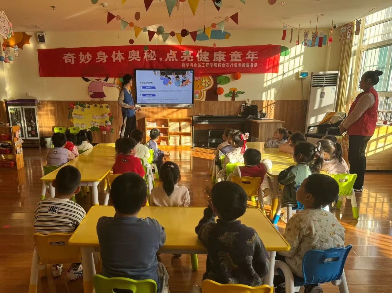 为普及儿童健康知识,帮助小朋友们养成健康的生活习惯,2月14日,我院药食在行动服务队于聊城市东昌府区兴华路实验幼儿园举办以“奇妙身体奥秘,点亮健康童年”为主题的社会实践活动。