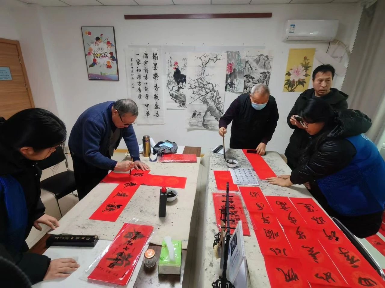 活动伊始,团队成员分为两组开展写春联与口腔健康知识宣传工作。团队成员与口腔医院工作人员合作,支起桌椅,摆放好宣传资料与检查设备。前来咨询的居民络绎不绝,团队成员耐心细致地为他们检查口腔,针对牙龈出血、牙齿松动等常见问题进行专业解答,并根据居民的不同口腔状况,给出个性化的护理建议。为了让居民更直观地了解口腔健康知识,团队成员还借助牙齿模型、牙刷等工具,以通俗易懂的方式讲解正确的刷牙方法、口腔清洁的重要性等内容。随后,团队成员将写好的春联与福字分发给社区居民。社区居民积极参与其中,欢笑声此起彼伏。活动结束后,居民们纷纷表示,通过本次活动,他们不仅学到了实用知识,认识到口腔保健的重要性,更通过一副副红彤彤的春联,深深感受到了春节喜庆与温暖的氛围。
