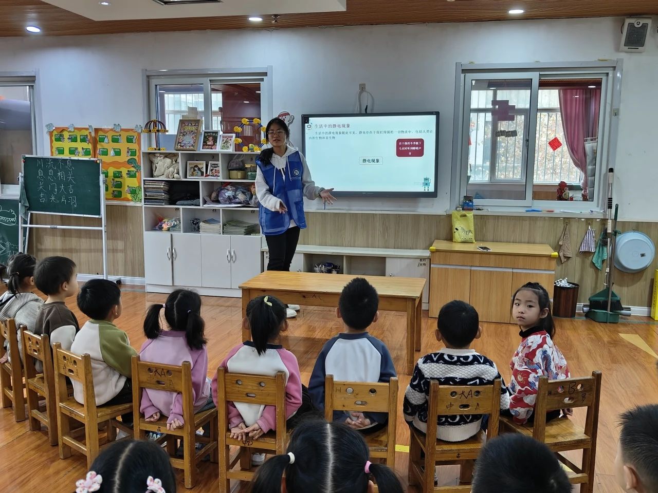 活动伊始,团队成员以通俗易懂的方式向小朋友们介绍了摩擦起电的基本原理,并利用塑料梳子、塑料尺、纸屑等日常生活用品生动展示了摩擦产生静电的过程。小朋友们认真聆听,对摩擦起电的实验提出疑问。随后,团队成员引导小朋友们进行静电吸附实验,耐心讲解实验步骤,指导小朋友们正确操作。活动临近尾声,小朋友们运用所学知识进行自主实验,进一步领会科学的魅力。团队成员还积极与小朋友们互动交流,解答他们的疑问,分享自己的学习心得和体会。活动结束后,小朋友们纷纷表示不仅在轻松愉快的氛围中学习到了物理知识,还体会到了科学的奥秘。