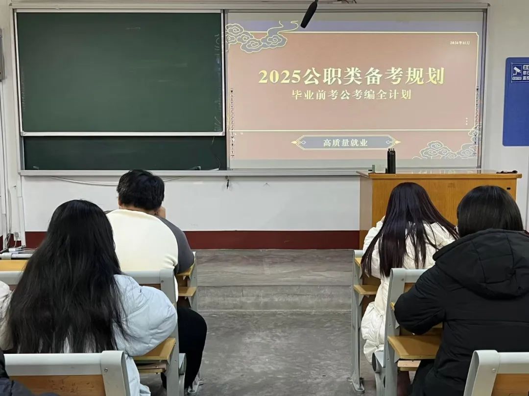 为帮助学生全面了解公职考试,掌握公职考试的技巧和策略,提高学生的应试能力与备考效率,12月23日,我院于OK138太阳集团东校区2#212举办2025公职类备考公益讲座。