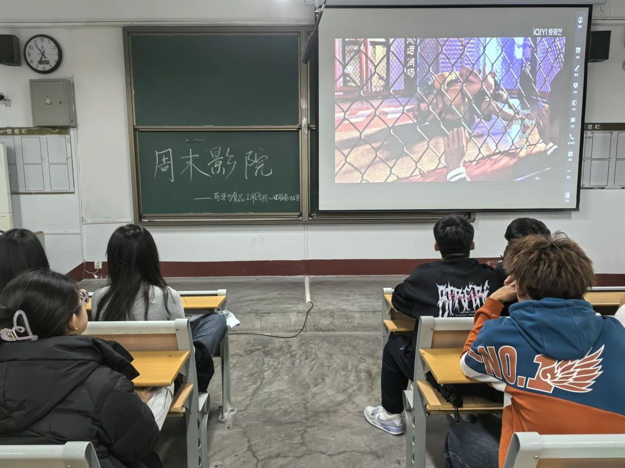此活动选取了电影《八角笼中》作为放映影片。该影片讲述了大山里的孩子们在恶劣的生存环境下,不甘于被贫困和命运束缚,通过格斗努力改变自身命运的奋斗历程。他们在八角笼中挥洒汗水、承受伤痛,凭借着顽强的意志和不屈不挠的精神,与命运进行着激烈的抗争,最终实现了人生的突破,体现了人类在困境中追求梦想、永不言弃的强大力量。同时,影片揭示了诸多社会现实问题,如贫困儿童的艰难处境、体育行业的乱象、舆论的盲目等,引发了学生对社会公平、弱势群体关怀等问题的思考。该影片大量使用了深焦镜头,同时运用了黑色电影风格,展现了社会中不同人物的善良与丑恶。学生认真观看,深受影片触动,纷纷表示会勇敢地去追寻梦想,更加坚定自己的理想信念,并为之坚持不懈地奋斗。