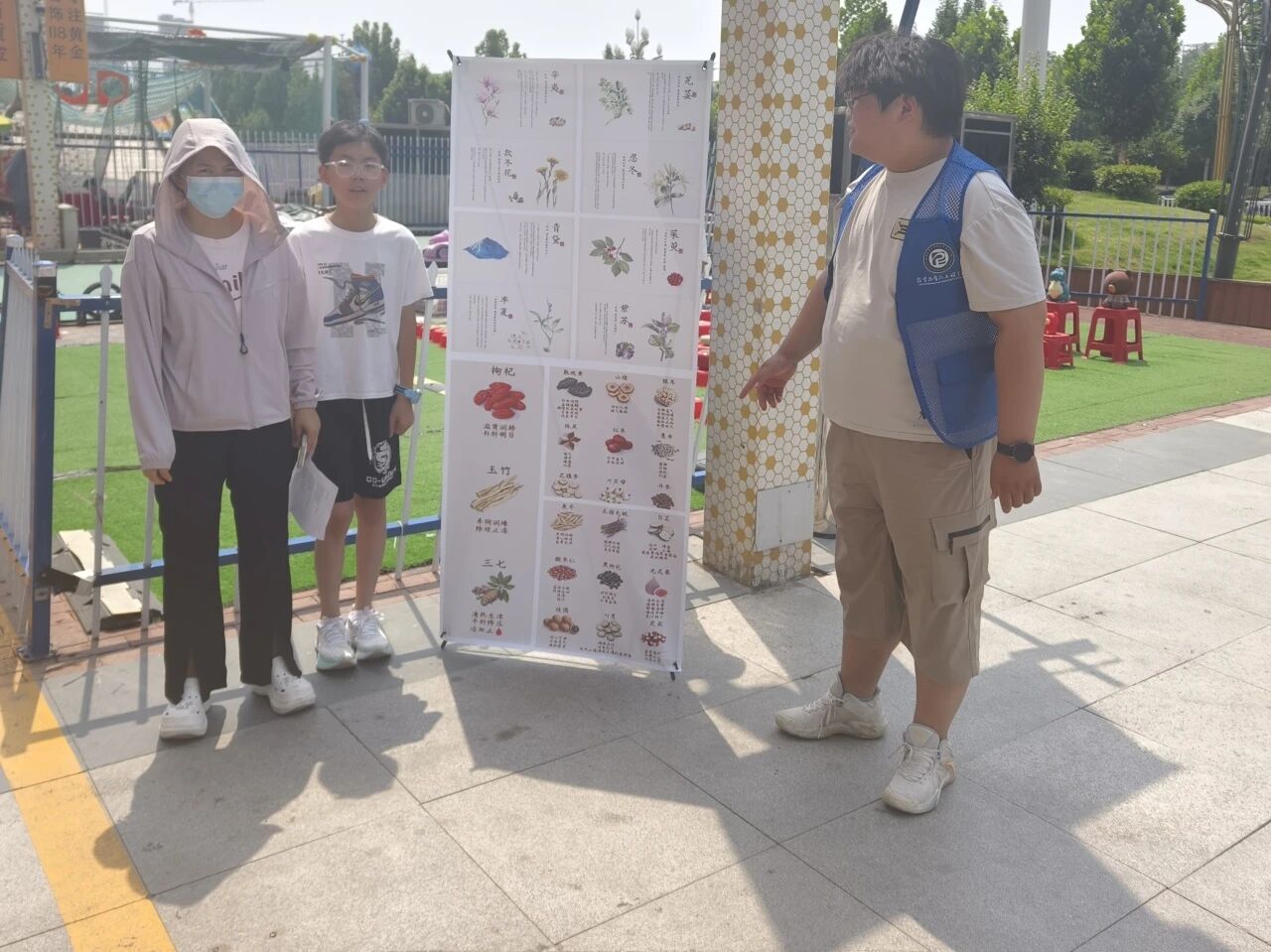 活动伊始,团队成员通过文献研究与专业分析,全面梳理了常见中草药的名称溯源、药用功效、生态习性及入药部位等专业知识,随后进行了科普海报的设计与制作,以可视化图表结合通俗化文字,系统展示了黄连、黄芪、当归、麻黄等清热解毒、补气养血、解表散寒等功效类别的代表性草药。活动现场,团队成员将科普海报布置于显著区域,并向过往群众发放专业知识手册,通过现场讲解与互动答疑,深入阐释中草药在疾病预防、养生保健等领域的应用价值。