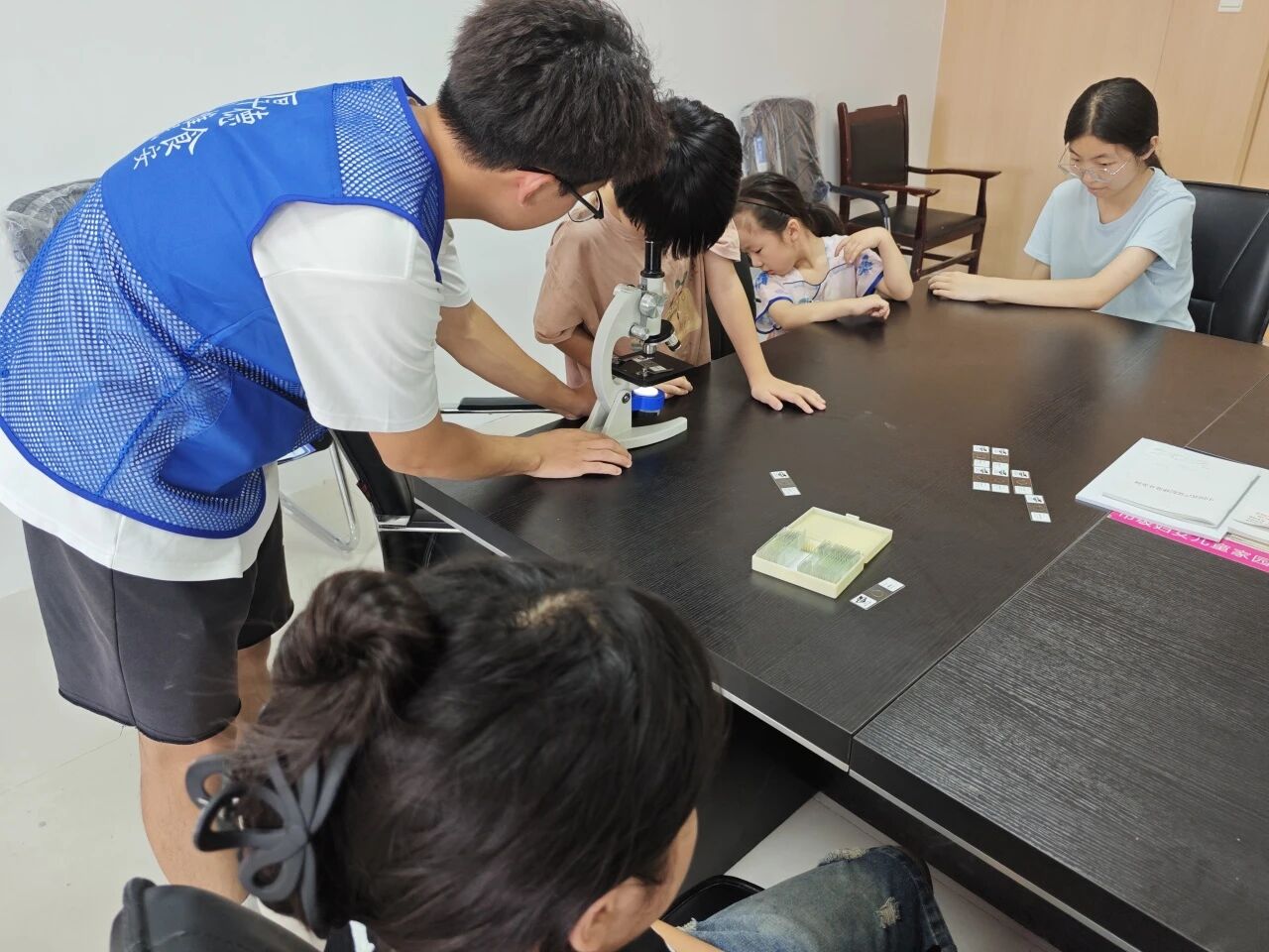 为解决小朋友们对显微技术与生物知识的认知问题,帮助小朋友们掌握显微镜的基础应用逻辑,8月2日,我院红药先锋志愿服务队于聊城市阳谷县郭屯社区举办以 “显微生灵奇遇,微观世界寻踪” 为主题的社区实践活动。