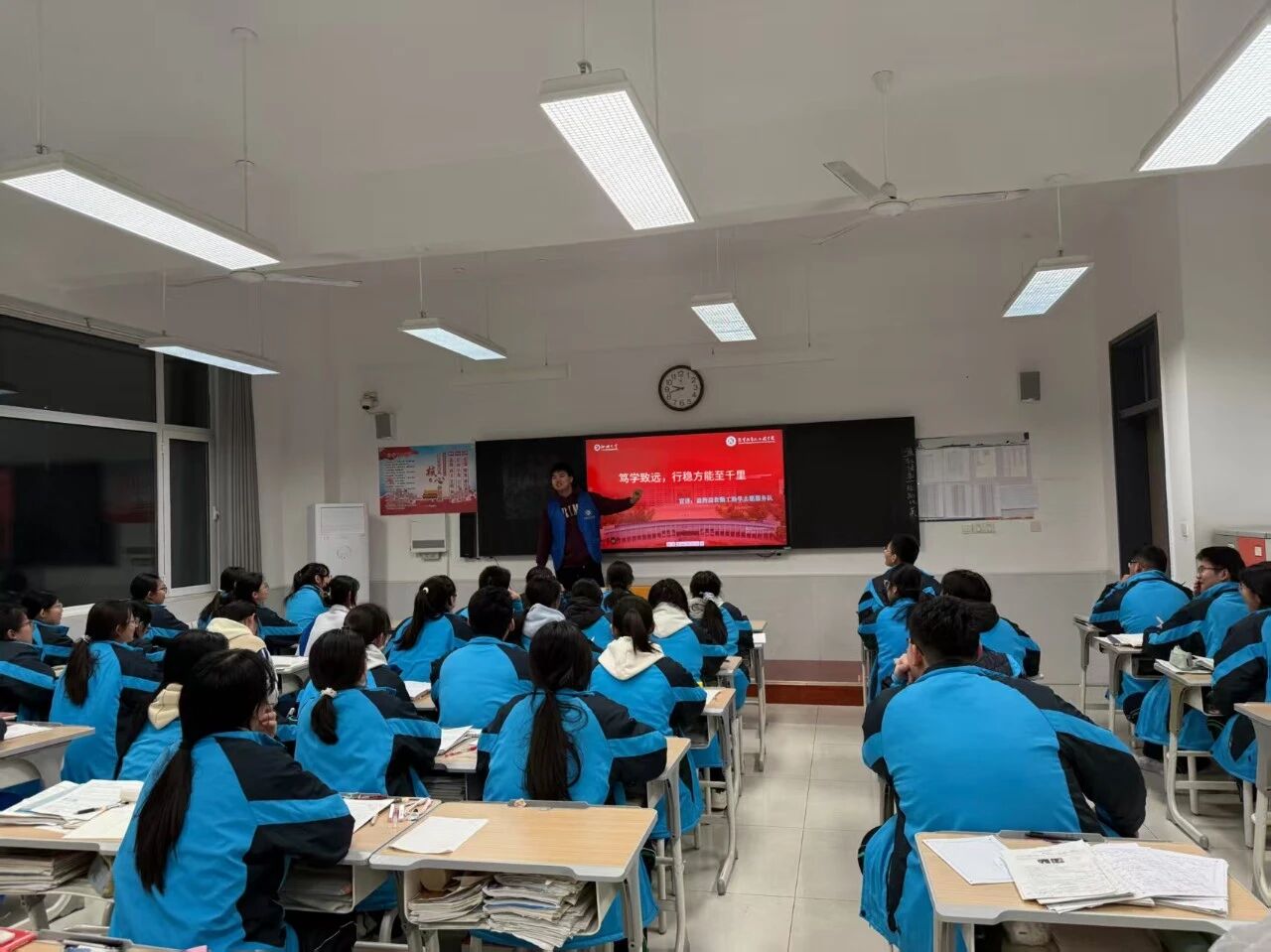 活动伊始,团队成员结合自身求学经历、实践感悟与所学专业核心特点,为高中生讲解了我校各专业的培养方向、就业前景与发展路径,同时分享科学合理的升学规划技巧、生涯选择思路与个人成长成才经验,帮助高中生拓宽认知视野。随后,团队成员分享了高效备考的学习方法、科学的时间管理技巧、劳逸结合的备考节奏规划,以及应对压力、调适心态的实用策略,为高中生提供了实用的备考方法。互动答疑环节,学生踊跃发言,围绕专业选择困惑、备考瓶颈突破、未来发展路径等问题积极提问,团队成员耐心倾听,并结合自身经验逐一解答学生疑惑,现场氛围热烈。