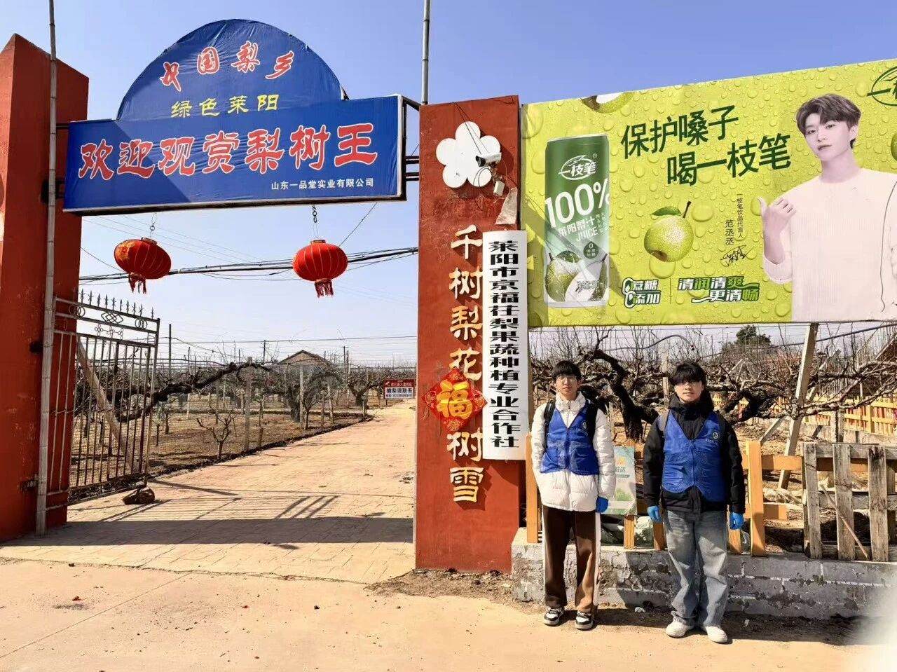 活动伊始,团队成员走进莱阳梨种植基地与古梨树群保护区,系统了解莱阳梨种植历史、栽培规模、标准化管理与古树保护现状,实地观察梨树冬季育芽生长态势,记录种植模式、水肥管理、病害绿色防控等关键技术。为探究莱阳梨独特品质的成因,团队按照规范流程,在不同地块采集土壤样本,用于后续指标检测与肥力分析。随后,团队成员走访多个合作社,了解梨膏、梨汁、梨脯等产品的现代化生产线,学习产业链延伸、品牌打造与市场拓展的知识。