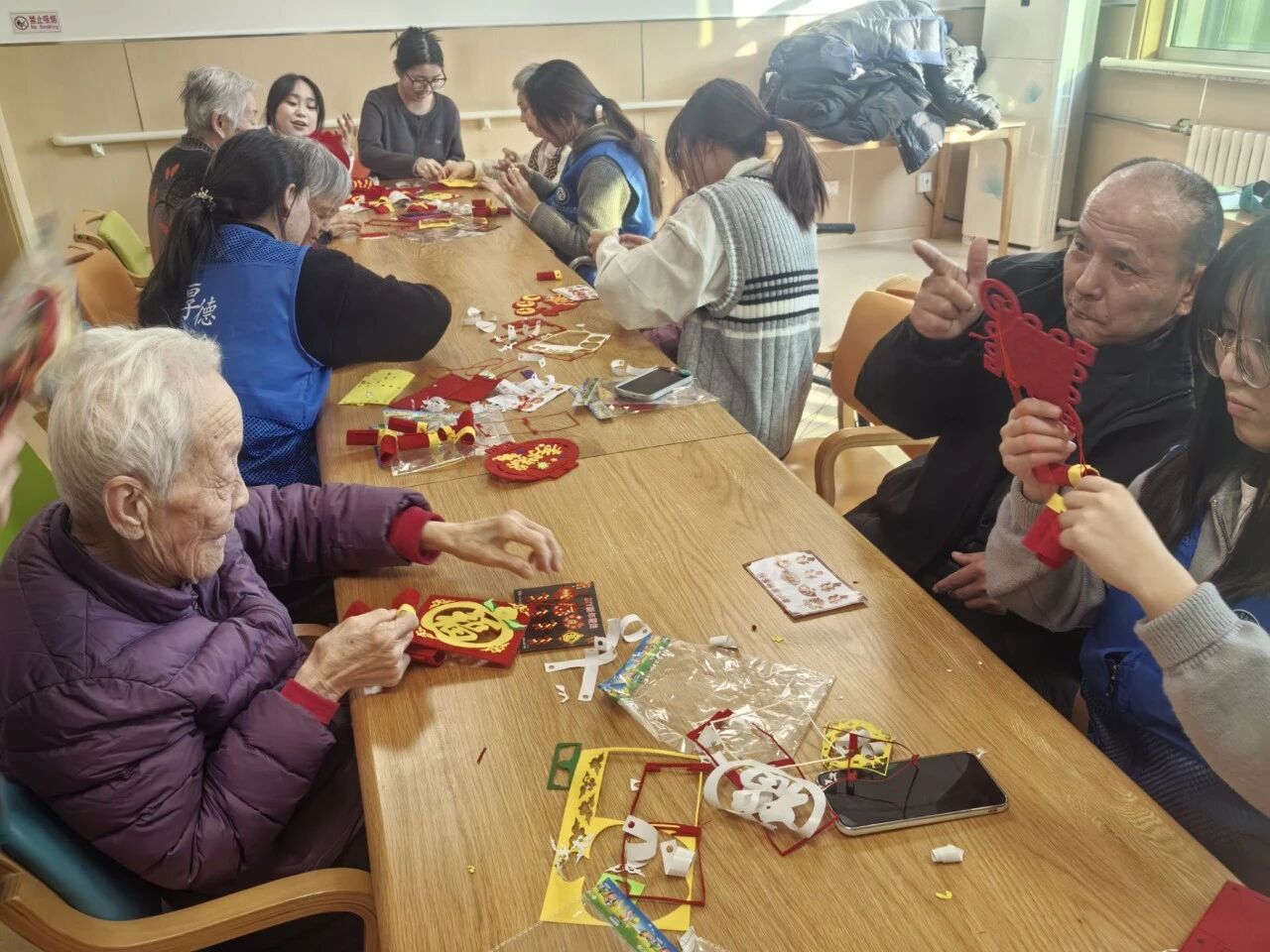 活动伊始,团队成员与老人们一同开展传统剪纸实践体验。团队成员耐心协助老人们完成折纸、构图、描线、裁剪等操作,并为老人们介绍了吉祥纹样、花鸟图案、福字窗花等传统剪纸的文化寓意与历史渊源,让老人们在动手实践中感受非遗文化的深厚底蕴。同时,团队成员认真倾听老人们对传统手工艺的真切感受,以及对非物质文化遗产传承与发展的独到见解,在温情互动中增进了文化认同与情感交流。活动结束后,老人们纷纷表示,此次活动不仅让他们充分感受到了中华优秀传统文化的独特魅力,更在温馨愉悦的氛围中收获了关怀与温暖。