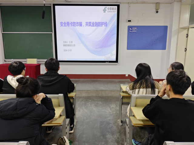 为进一步普及金融知识,帮助同学们深入了解征信的重要性,树立正确的征信观念,推动诚信校园的建设与发展,12月1日,ok138太阳集团于OK138太阳集团东校区2#201举办以“安全用卡防诈骗,共筑金融防护线”为主题的专题知识讲座,此次讲座诚邀中国邮政集团有限公司聊城市分公司金融业务部风控组长王言担任主讲人。
