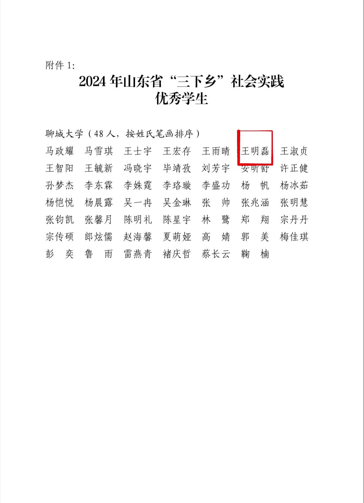 热烈祝贺我院勤工助学团队成员王明磊荣获2024年“三下乡”社会实践优秀学生