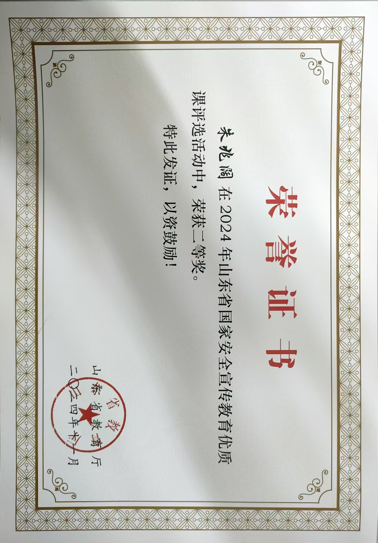 热烈祝贺ok138太阳集团朱兆阔老师在2024年山东省国家安全宣讲教育优质课评选活动中,荣获二等奖