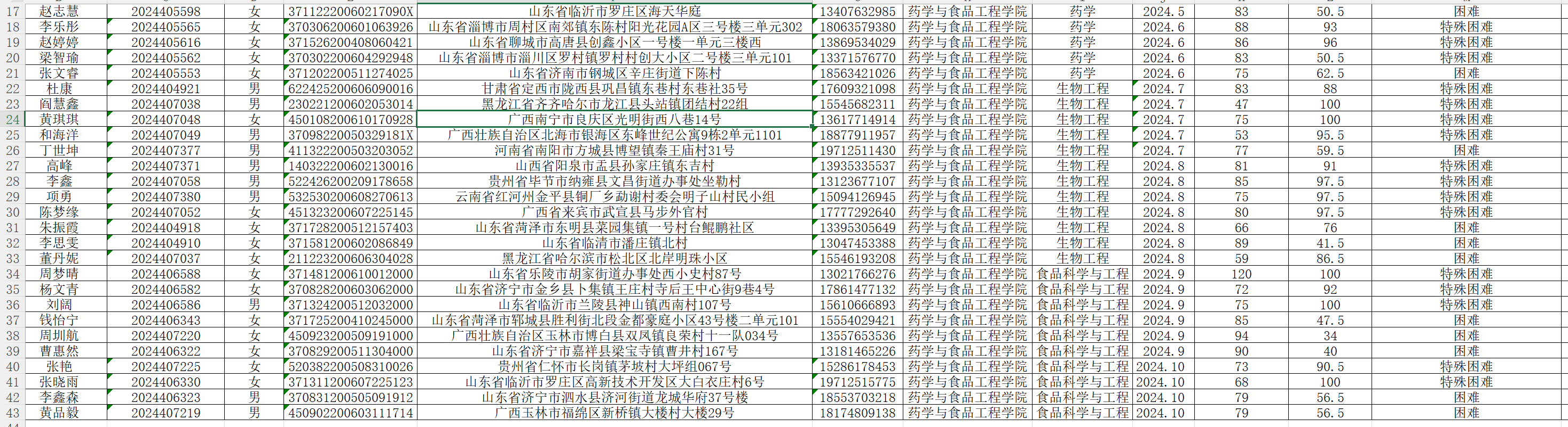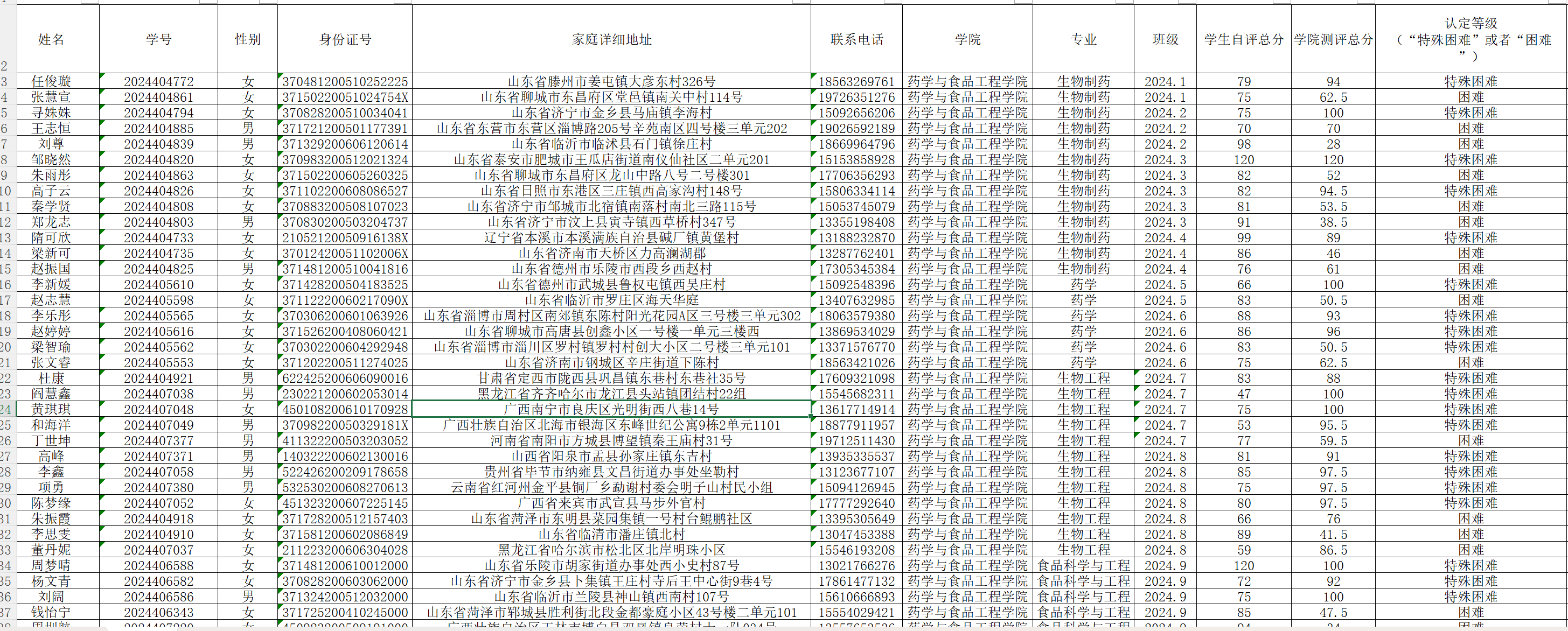 秋季资格审查|ok138太阳集团2024级家庭经济困难学生认定汇总表