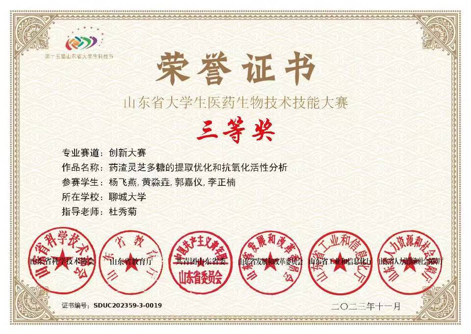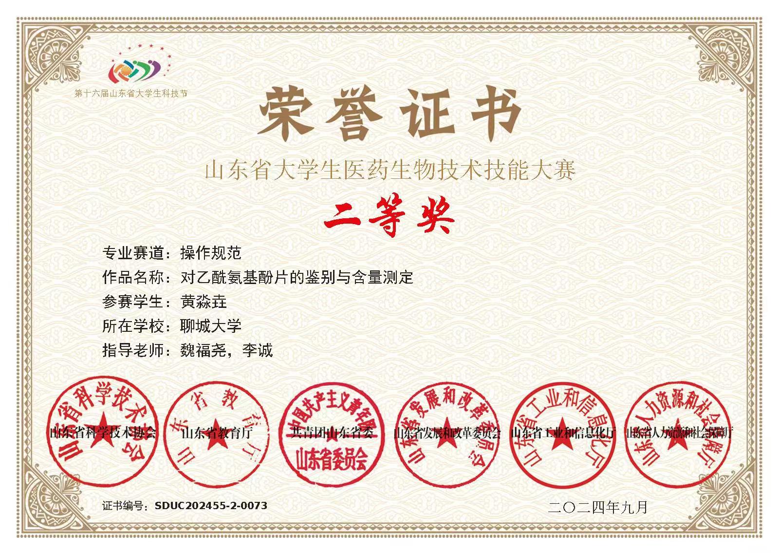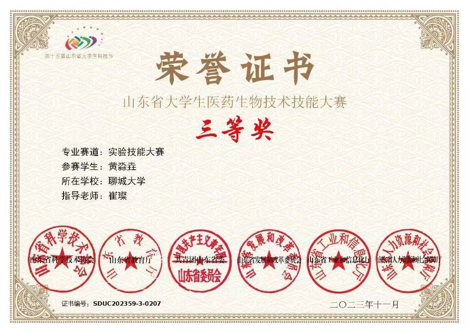 热烈祝贺ok138太阳集团黄淼垚荣获全国大学生生命科学竞赛(2023,创新创业类)山东赛区竞赛一等奖