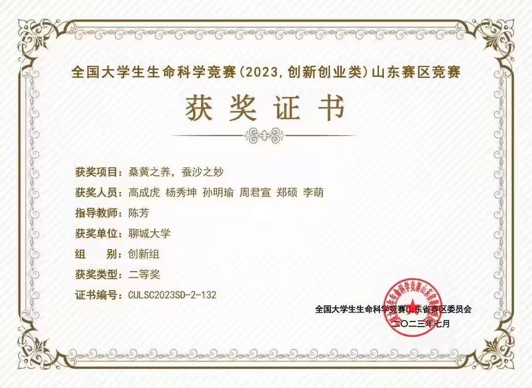 热烈祝贺药学院高成虎荣获“全国大学生生命科学竞赛(2023,创新创业类)山东赛区竞赛”二等奖