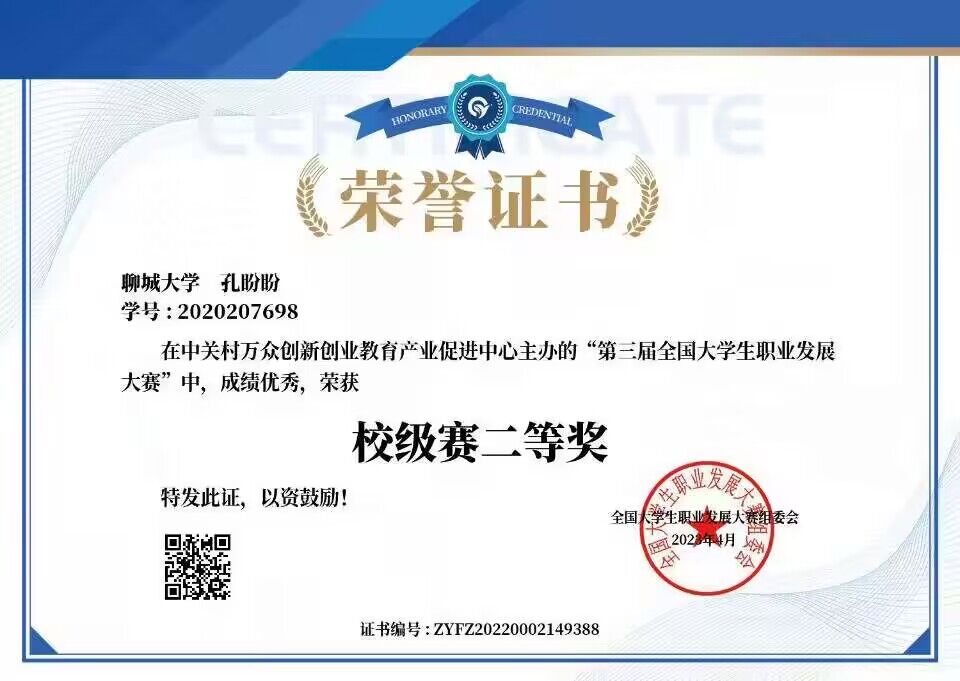 热烈祝贺药学院孔盼盼荣获“第三届全国大学生职业发展大赛校级赛”二等奖