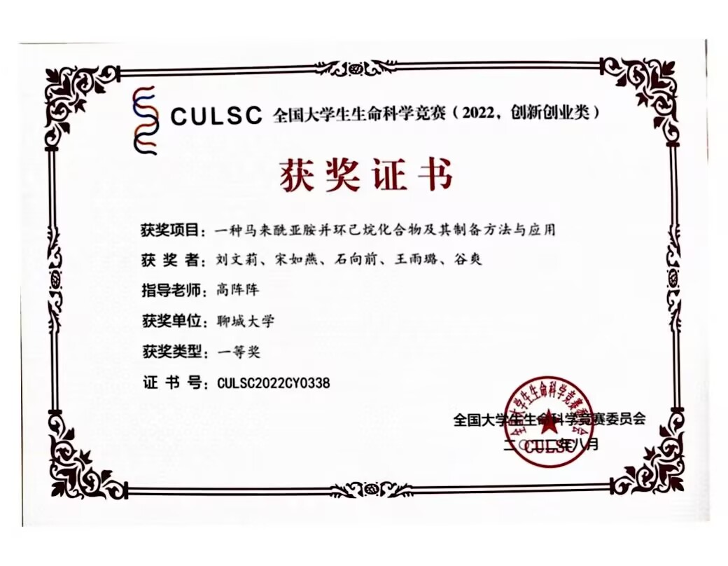 热烈祝贺药学院刘文莉荣获“全国大学生生命科学竞赛”一等奖