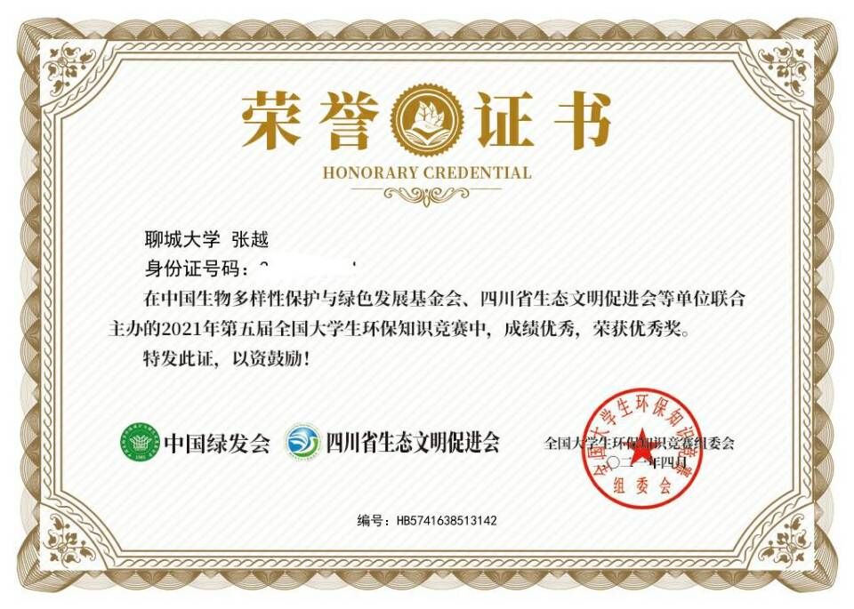 热烈祝贺药学院张越荣获环保知识竞赛优秀奖