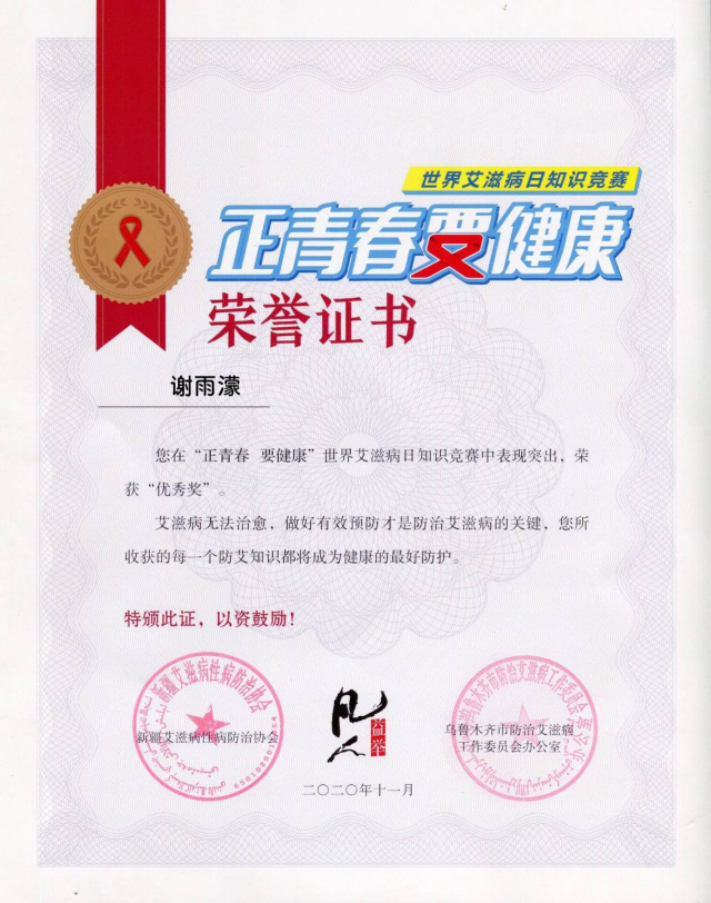 “正青春 要健康”世界艾滋病日知识竞赛药学院获奖学生