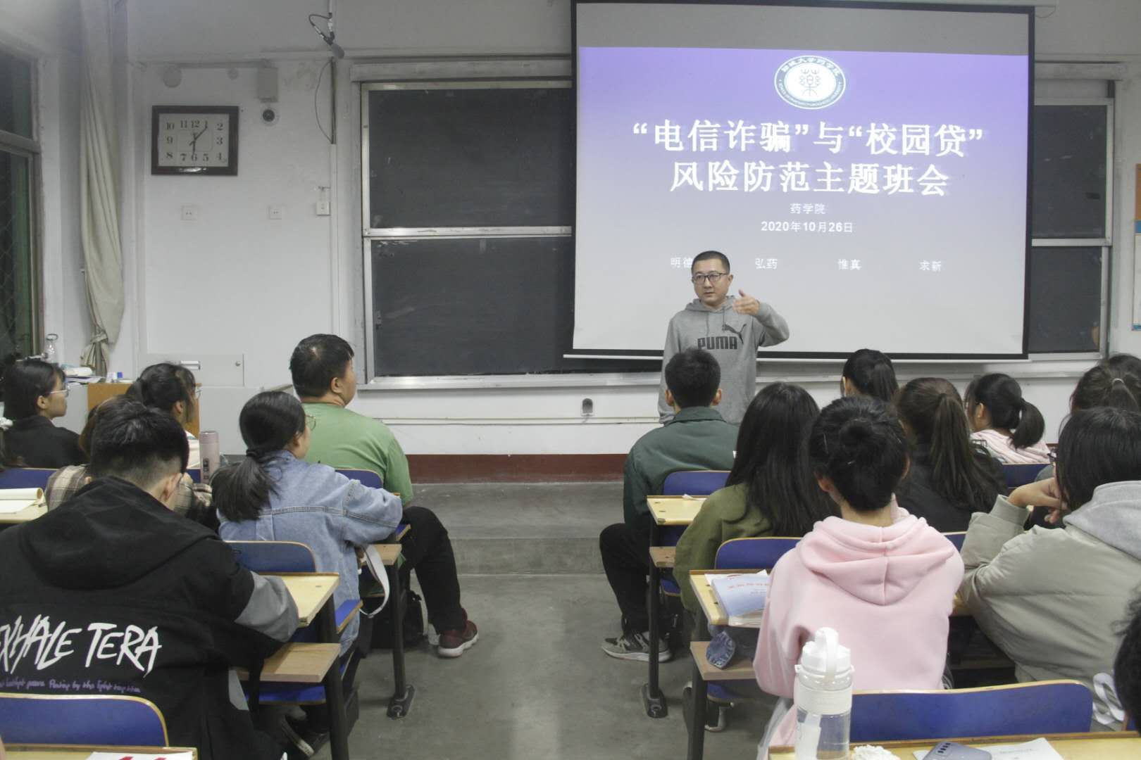 为增强学生的防范意识,提高其防诈骗能力,防止网络诈骗、不良借贷等情况发生。10月25日、26日,药学院于2#101、201开展了防诈骗主题系列活动。