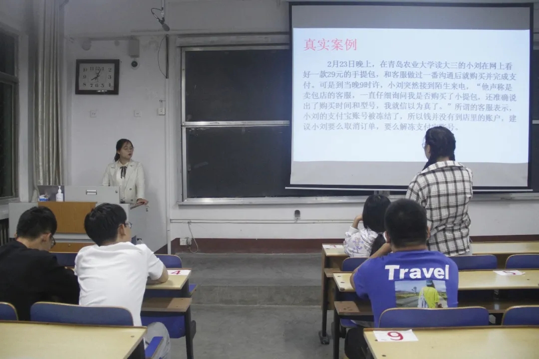 多一份网络防护技能,多一份信息安全保证。针对层出不穷的诈骗案例,刘欣然对众多诈骗方式进行了详细介绍。有些诈骗犯通过淘宝店家欺诈消费者,盗用学生银行卡支出存款;还有些诈骗犯通过盗用学生微信、QQ等通讯工具,从其好友手中盗取非法利益;甚至有些诈骗犯用较为常见的“刷单”诈骗法,欺骗涉世未深的学生。通过所举案例,学生们深刻意识到欺诈者的诡计多端与自身防范意识的不足。宣讲过程中,刘欣然与学生们积极互动,通过问答的方式丰富学生安全防范知识。刘欣然指出:“作为当代大学生,我们应该树立起正确的消费观念,不要为了满足一时的虚荣心,而给自己与家人带来损失,甚至带来不可挽回的后果。”