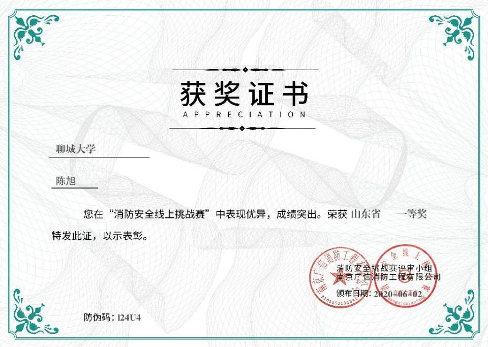 我院陈旭获“消防安全线上挑战赛”一等奖
