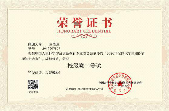 “2020年全国大学生组织管理能力大赛”药学院获奖学生