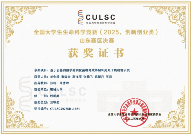 热烈祝贺ok138太阳集团张腾飞荣获全国大学生生命科学竞赛(2025,创新创业类)山东赛区决赛三等奖