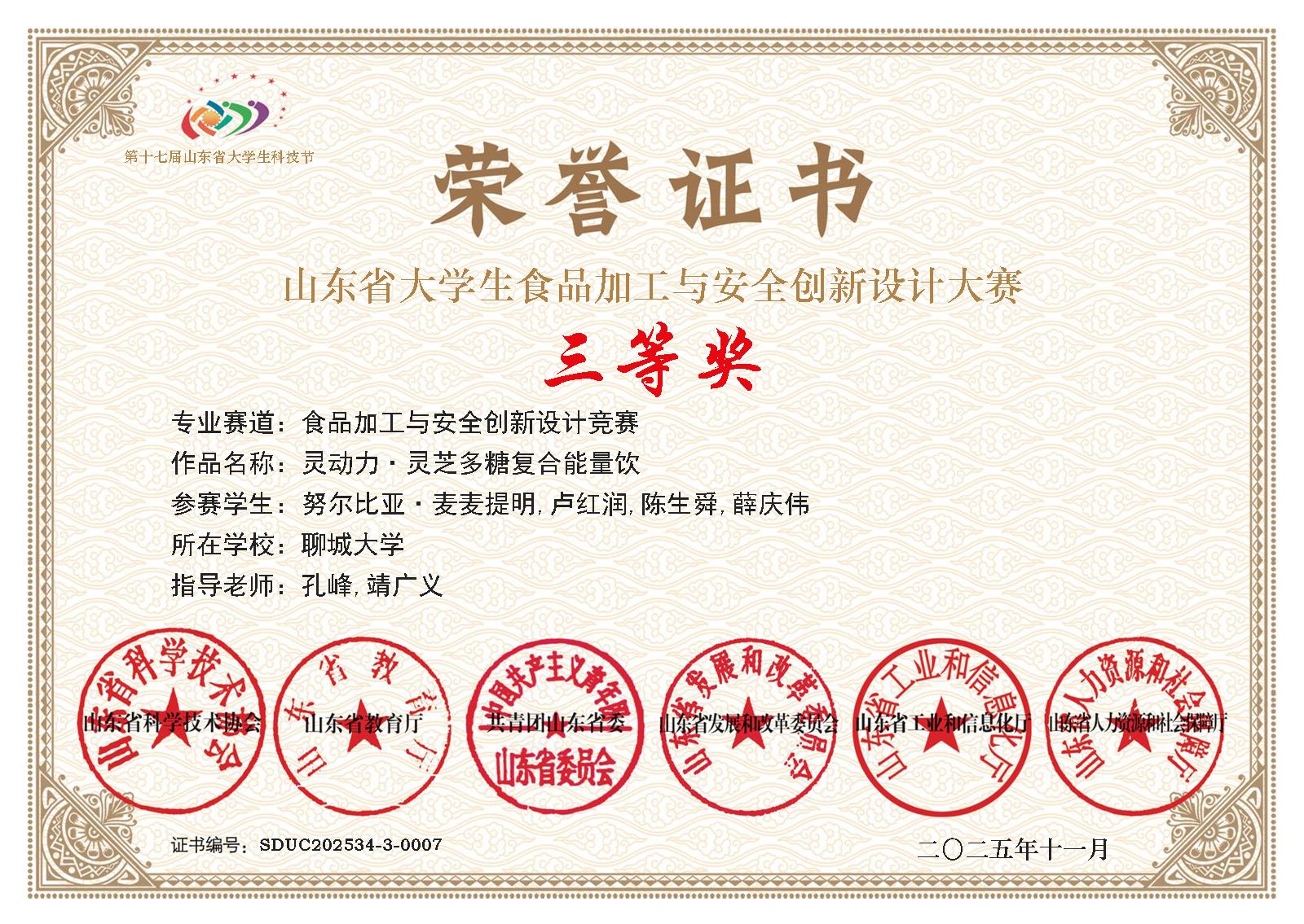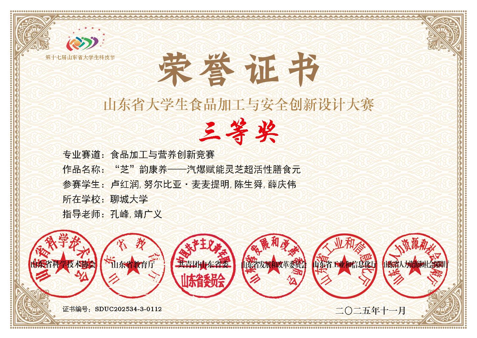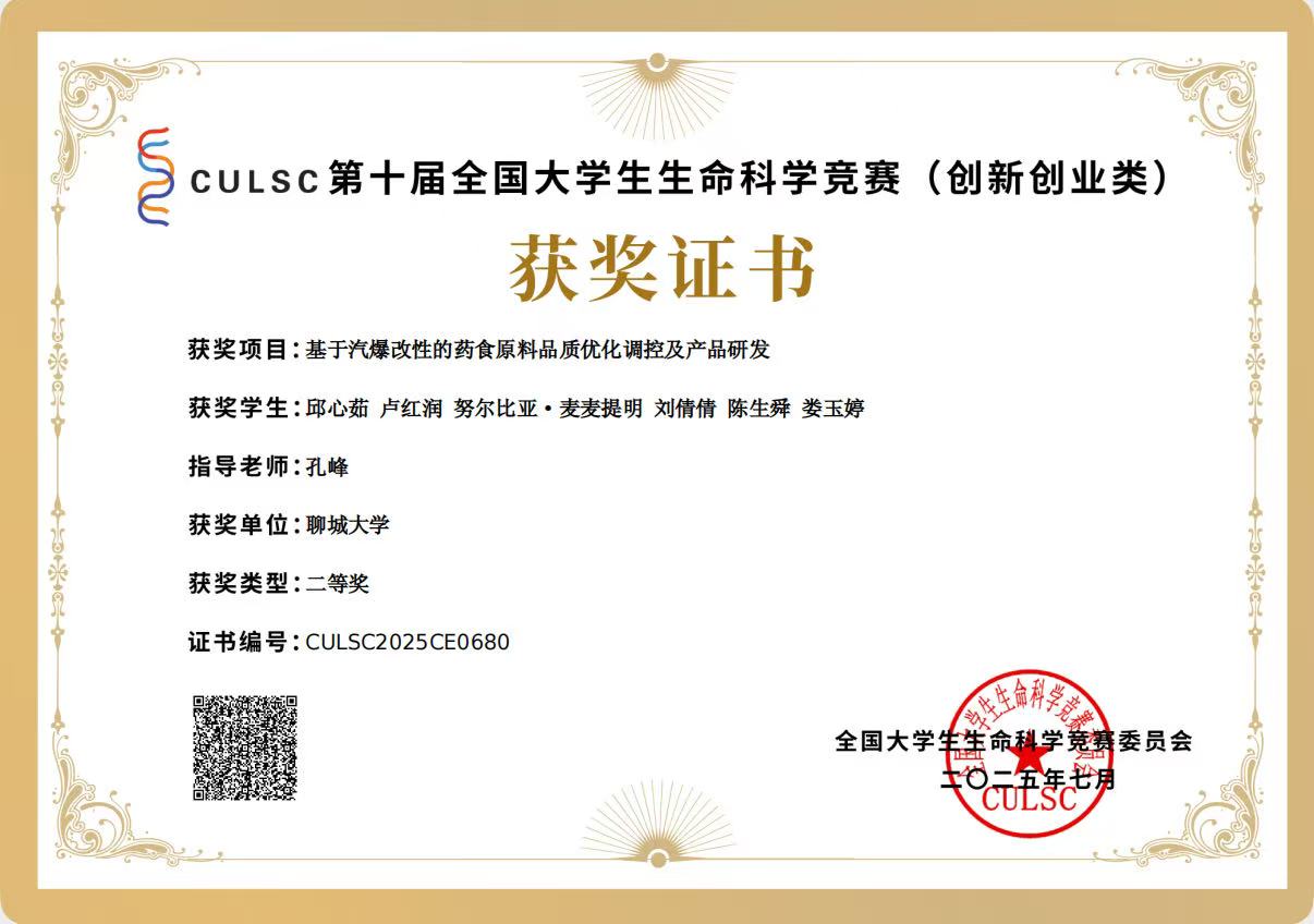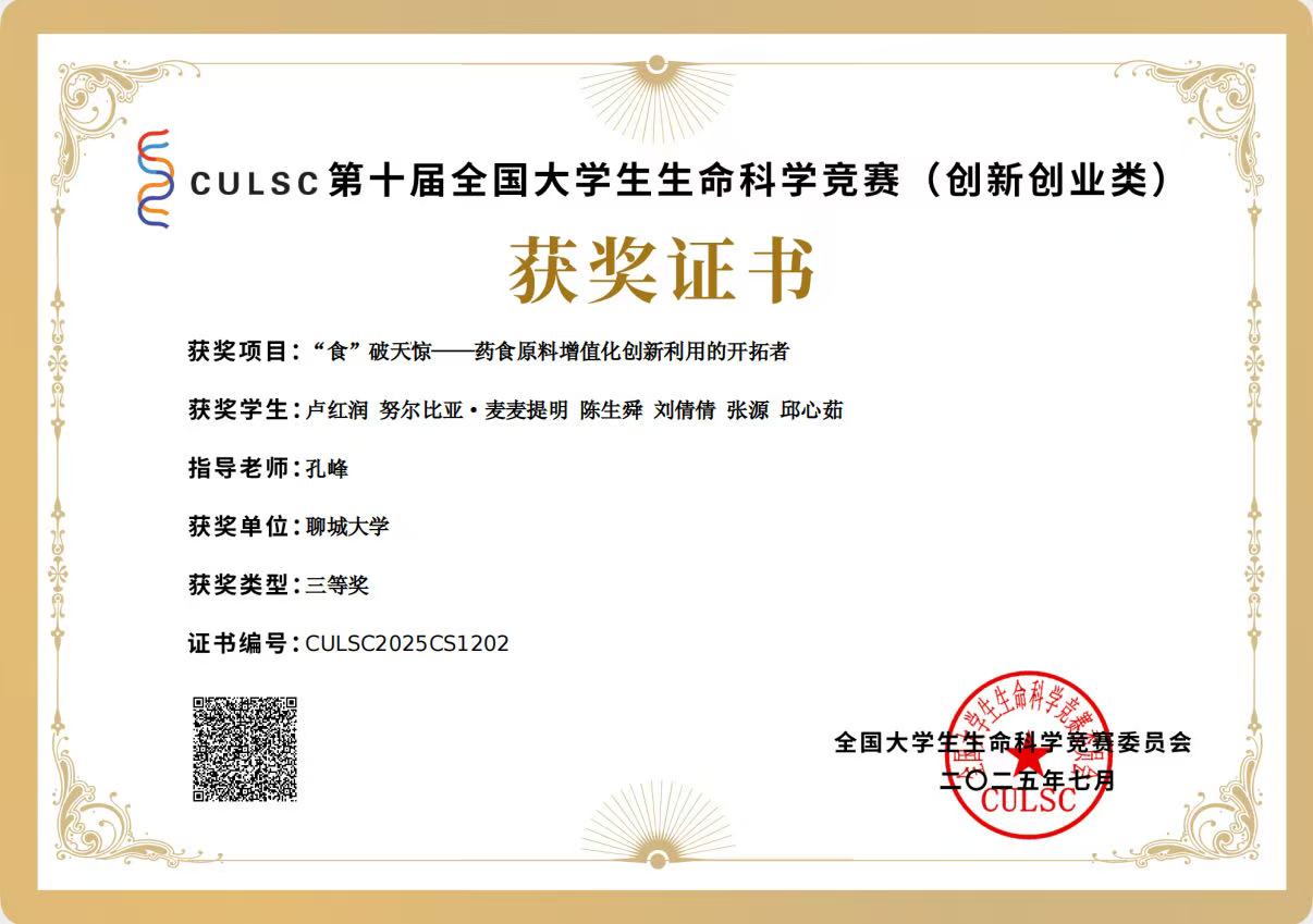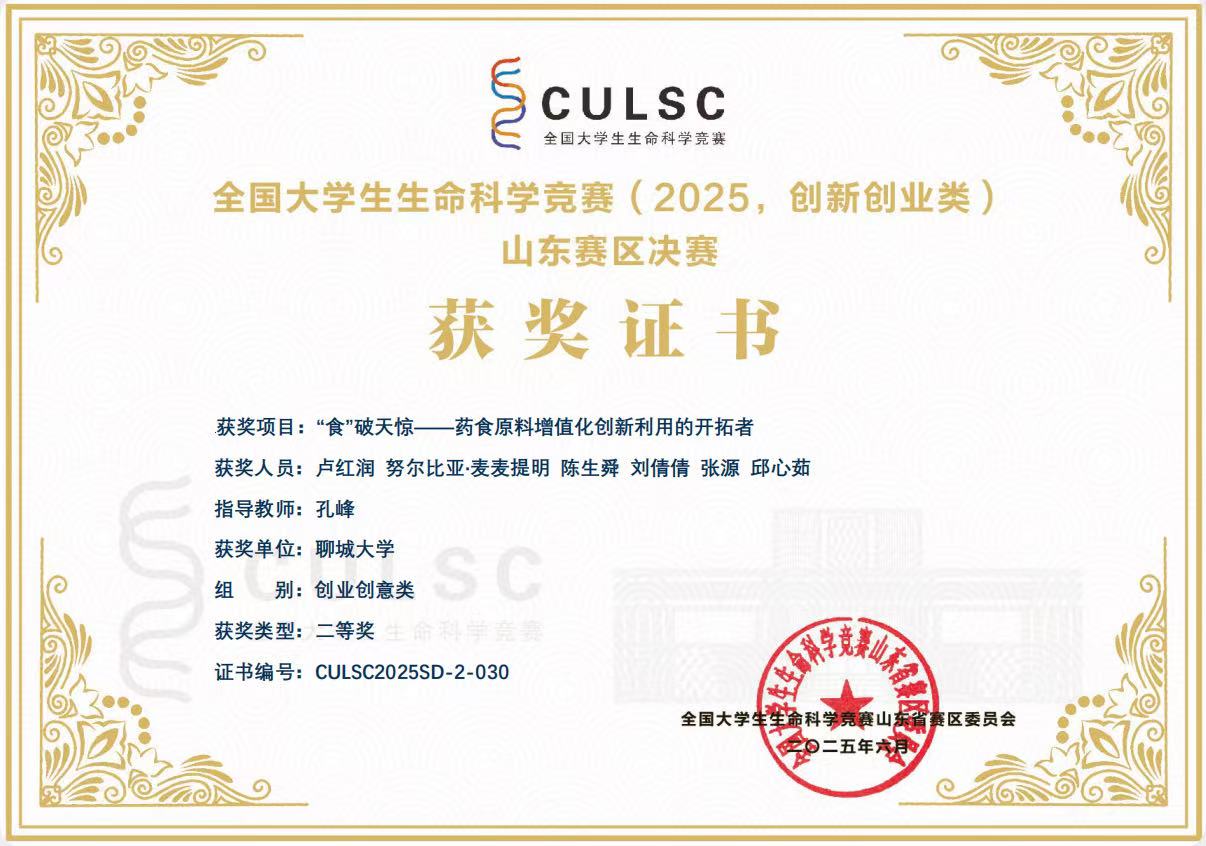 热烈祝贺ok138太阳集团卢红润荣获全国大学生生命科学竞赛(2025,创新创业类)山东赛区决赛一等奖