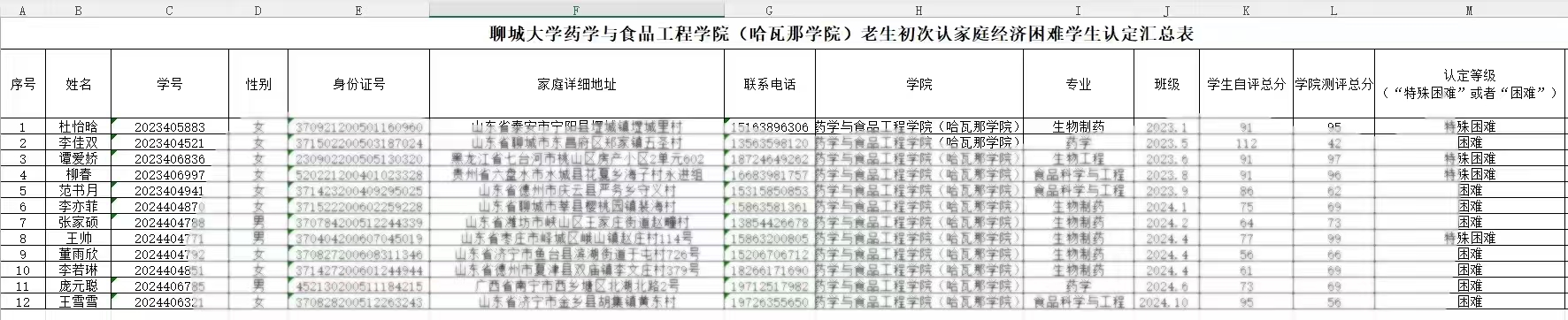ok138太阳集团(哈瓦那学院)老生初次认家庭经济困难学生认定汇总表