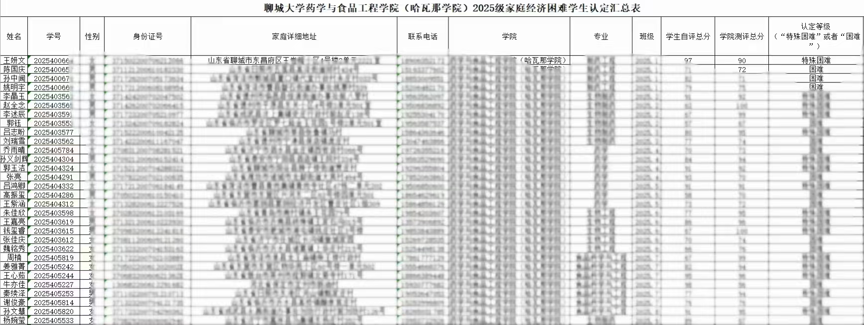 ok138太阳集团(哈瓦那学院)2025级家庭经济困难学生认定汇总表