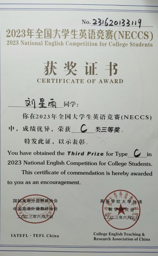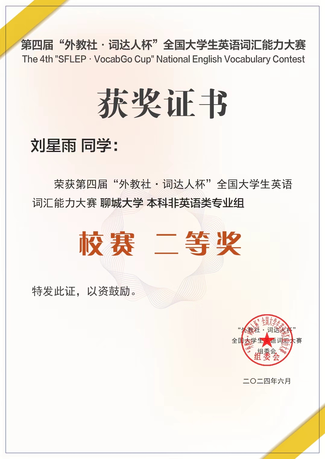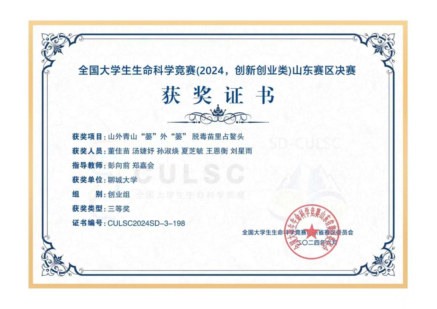 热烈祝贺ok138太阳集团刘星雨荣获全国大学生生命科学竞赛(2024,创新创业类)山东赛区决赛三等奖