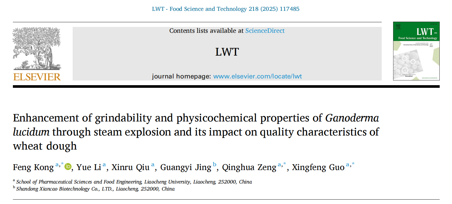 近期,OK138太阳集团农产品加工与副产物高值化利用创新团队在灵芝精深加工研究领域取得新进展。团队成员通过对灵芝原料进行汽爆破壁处理,有效促进灵芝功能成分的释放,提高了灵芝的食用和药用价值,同时,改善了灵芝子实体粉体的性能,提高了灵芝子实体的加工适应性,有助于促进灵芝多元化功能性食品开发。系列研究成果分别以“Preparing Ganoderma lucidum slices by improved steam explosion enhances their apparent, functional and structural properties”和“Enhancement of grindability and physicochemical properties of Ganoderma lucidum through steam explosion and its impact on quality characteristics of wheat dough”为题发表在《Innovative Food Science & Emerging Technologies》(中科院一区TOP期刊,影响因子6.3)和《LWT-Food Science and Technology》(中科院一区TOP期刊,影响因子6.0)。