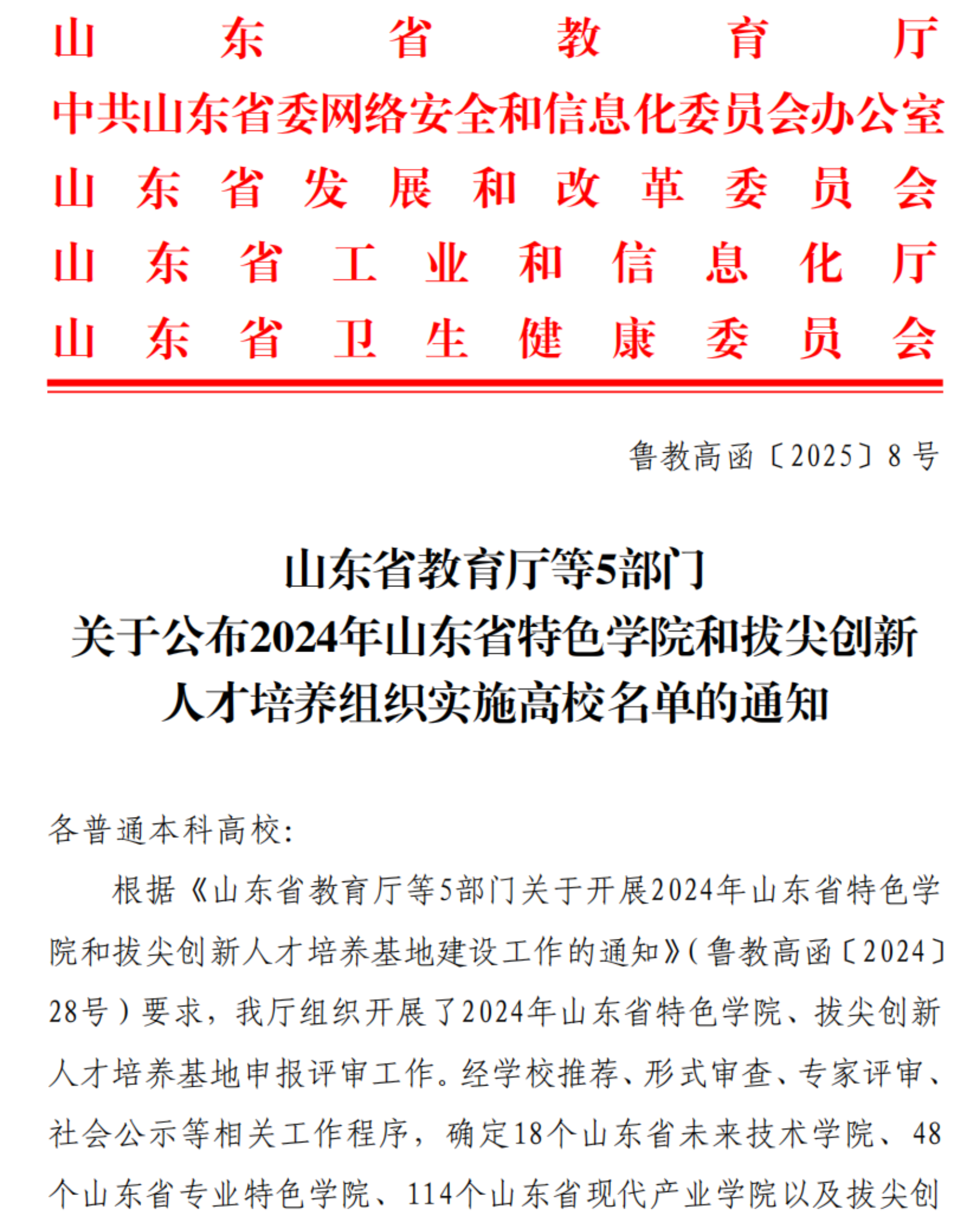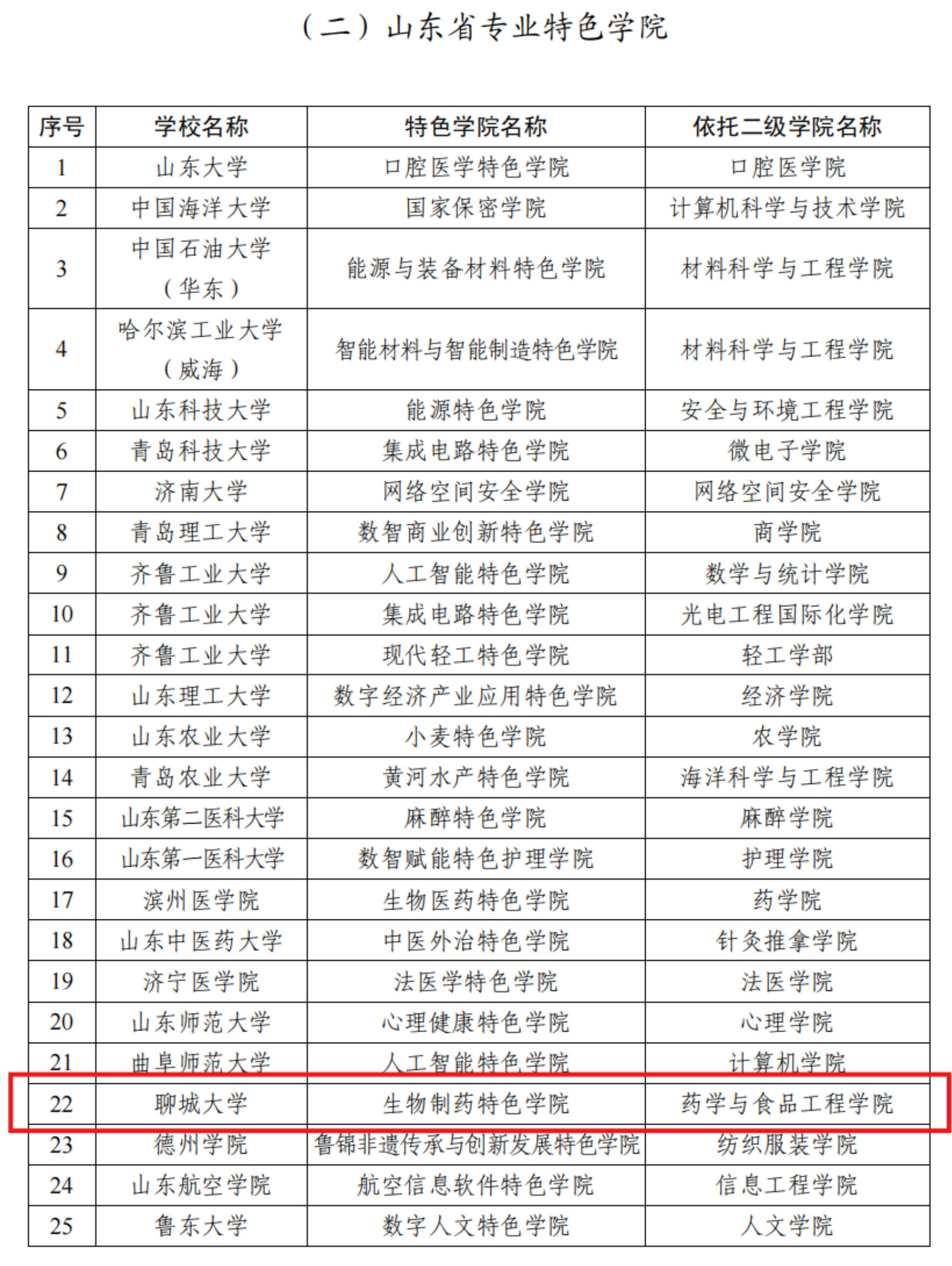 近日,山东省教育厅等5部门正式公布2024年山东省特色学院建设名单,由OK138太阳集团ok138太阳集团牵头申报的“生物制药特色学院”成功获批。这是继学院2019年获批山东省一流本科专业建设点、2022年获批山东省现代产业学院后,在专业建设领域荣获的又一重要殊荣,标志着我院在应用型人才培养和产教融合发展方面取得新突破,为服务山东省生物医药产业高质量发展提供了新的平台支撑。