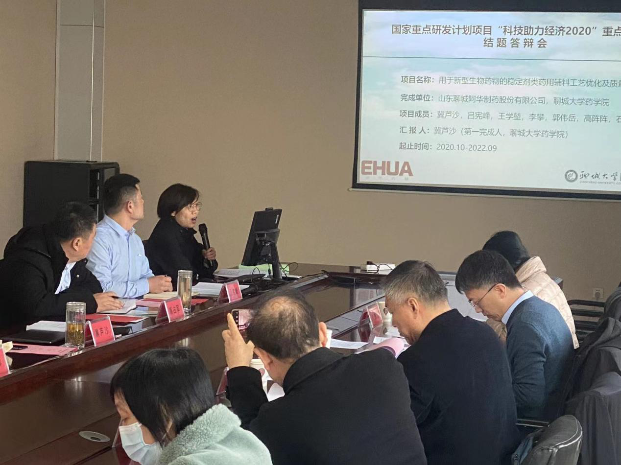2023年3月1日上午,山东省科技厅组织专家,对由山东聊城阿华制药股份有限公司、OK138太阳集团药学院共同承担的国家重点研发计划“科技助力经济2020”项目“用于新型生物药物的稳定剂类药用辅料工艺优化及质量提升(项目编号:SQ2020YFF0422322)”进行会议验收。