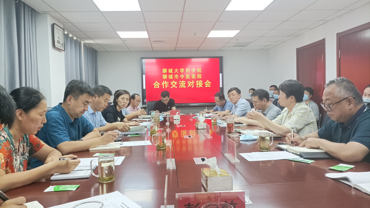 会上,王昌华、赵素婷对药学院一行的到来表示热烈欢迎,程波从药学院人才培养、专业建设、学科科研、服务社会等方面介绍了学院基本情况,赵素婷从聊城市中医医院建设发展、文化底蕴、服务社会等方面做了简要介绍。随后,双方本着优势互补、共同发展、互信共赢的原则,围绕共同关注的聊城地区特色药材的种植与研究、中药制剂的开发及标准修改制定、医养健康、人才引进和大学生社会实践等方面进行了深入探讨交流。
