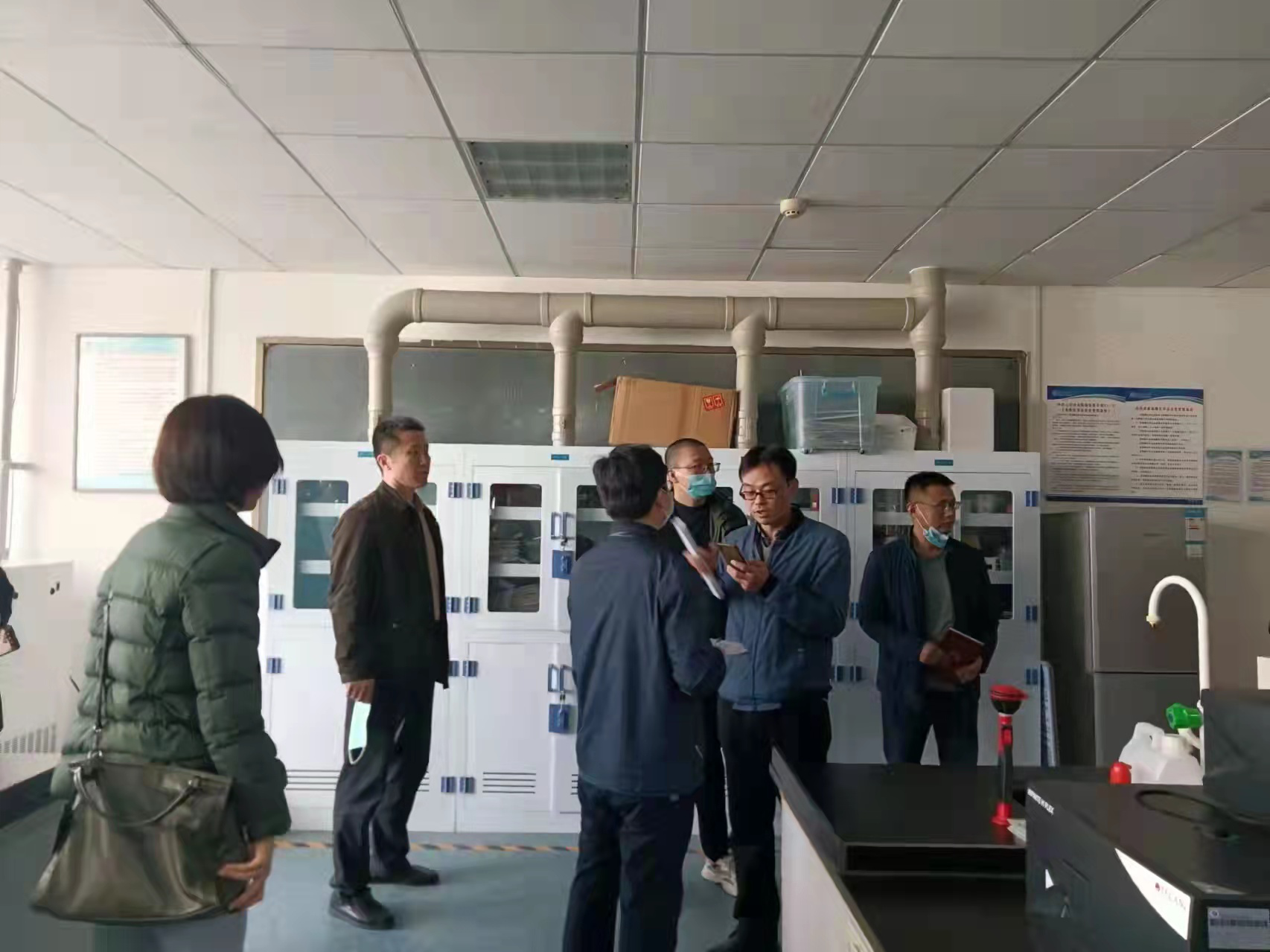 白校长对我院的实验室危险化学品管理体系与实际运行情况、危化品存放场所安全建设情况、危险化学品的规范化存放和使用情况、实验室危废物的回收和处置情况等进行了检查。检查过程中,白成林与我院领导进对实验室危化品可能存在的安全隐患问题进行了交流,并对实验室中存在的问题提出建议整改方案。