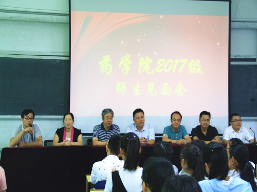 9月4日,药学院于2#101召开师生见面会,药学院党总支书记刘德芳,常务副院长柳仁民,院长助理董惠钧,教师代表刘国运,生物制药系主任陈芳,制药工程系主任聂少振以及2017级新生参加了此次见面会,见面会由学院分团委书记杨磊主持。