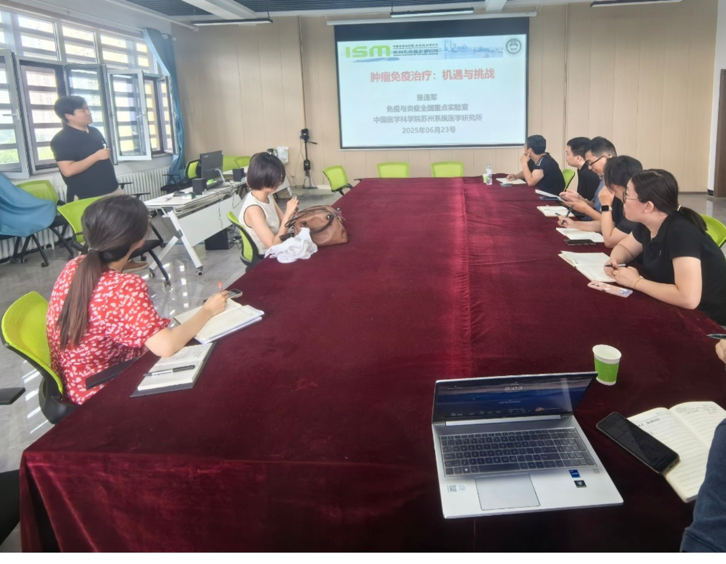 6月23日上午,应ok138太阳集团邀请,中国医学科学院苏州系统医学研究所研究员、北京协和医学院博士生导师张连军教授应邀做客聊大讲坛,于天枢楼601会议室作题为“肿瘤免疫治疗:机遇与挑战”的学术报告。学院骨干教师、研究生听取报告。