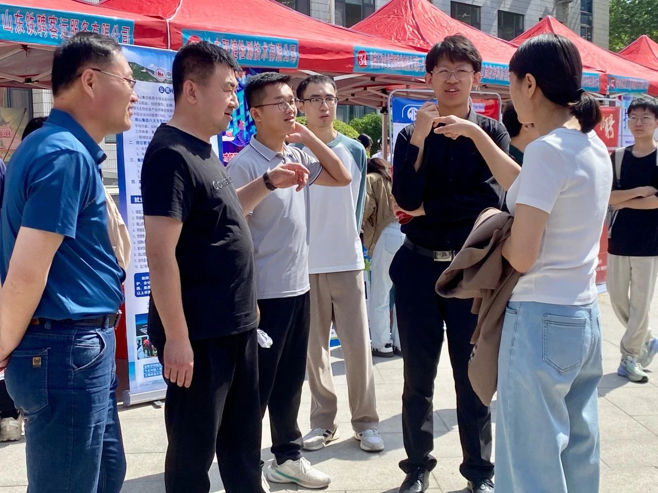 就业新时代,职场新起点。为进一步推动学院就业建设,搭建就业平台,提供全流程、全方位的就业服务,把就业岗位送到毕业生手中,5月15日,我院联合化学化工学院、农业与生物学院、医学院共同于东校区3号教学楼楼前广场举办“筑梦青春,‘职’在必得”2025届生化医药类专场双选会。本次招聘会共有70家单位参加,提供就业岗位1800余个,参会学生1000余人次,初步达成意向300余人次。我院领导班子成员、全体辅导员、毕业班班主任、2025届毕业生和部分2026届毕业生参加。