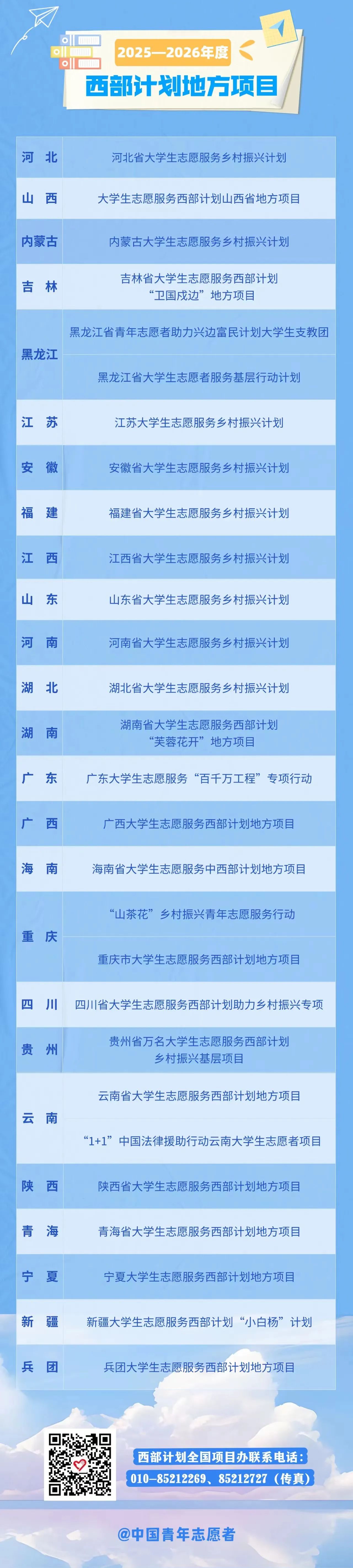 3月1日至5月10日,2025年普通高等学校应届毕业生或在读研究生,可通过微信公众号“西部志愿汇”(菜单栏中的“我要报名”)或登录西部计划官方网站(http://xibu.youth.cn),在西部计划报名系统中注册报名。